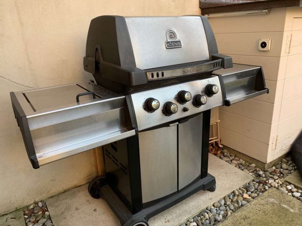 Koenig Sovereign 90 est muni de 3 brûleurs dual-tube en inox, d’une plaque de cuisson latérale, d’un brûleur arrière et d’un tournebroche.