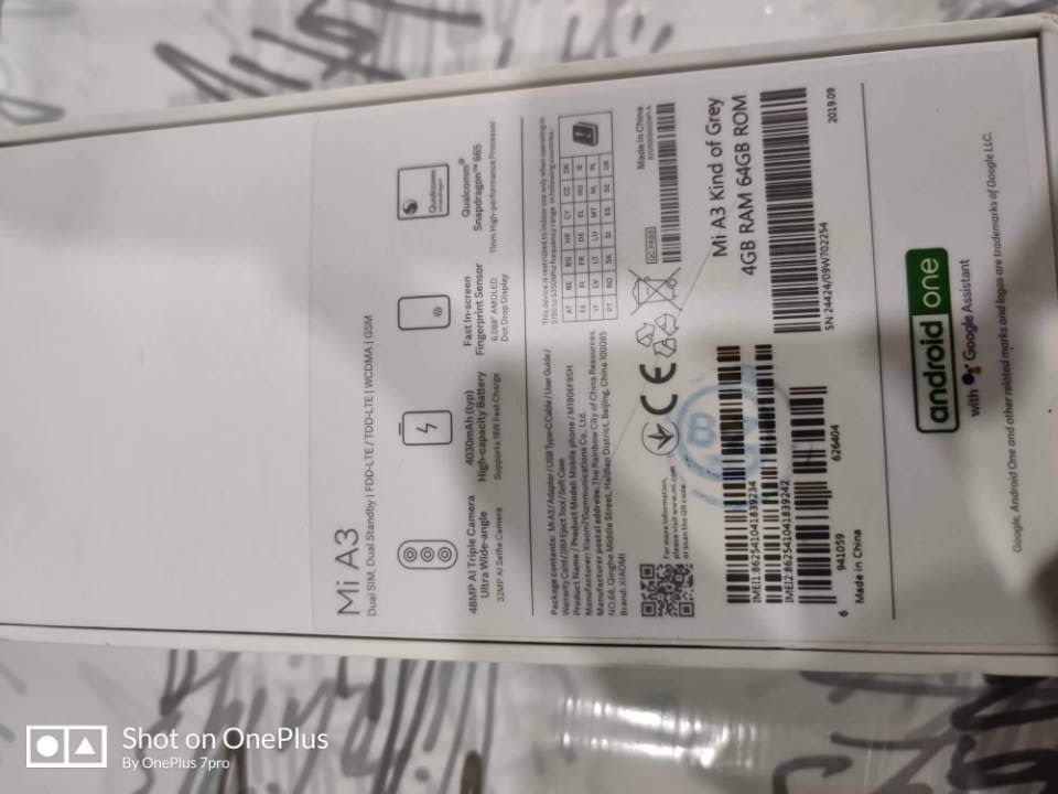 a vendre Xiaomi mi a3 4gb de Ram 64gb mémoire avec tous ses accessoires encore plastifié.